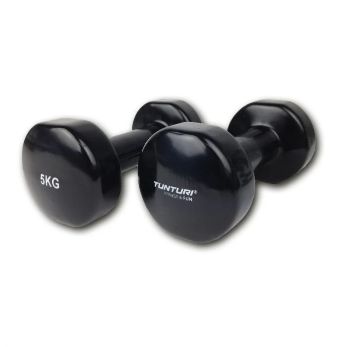 Hier vindt u meer informatie over het product Tunturi Vinyl Dumbels 5,0 Kg – Zwart.